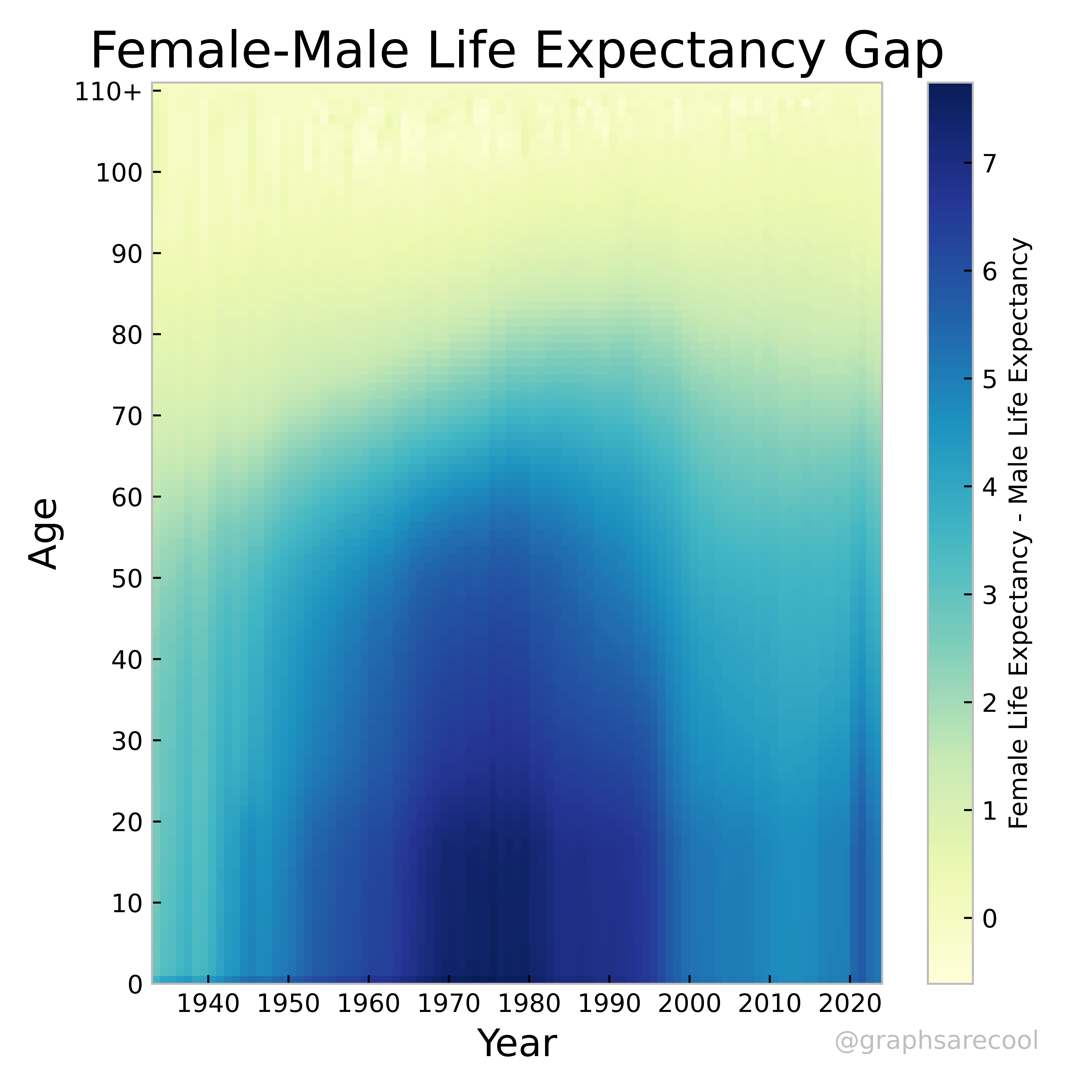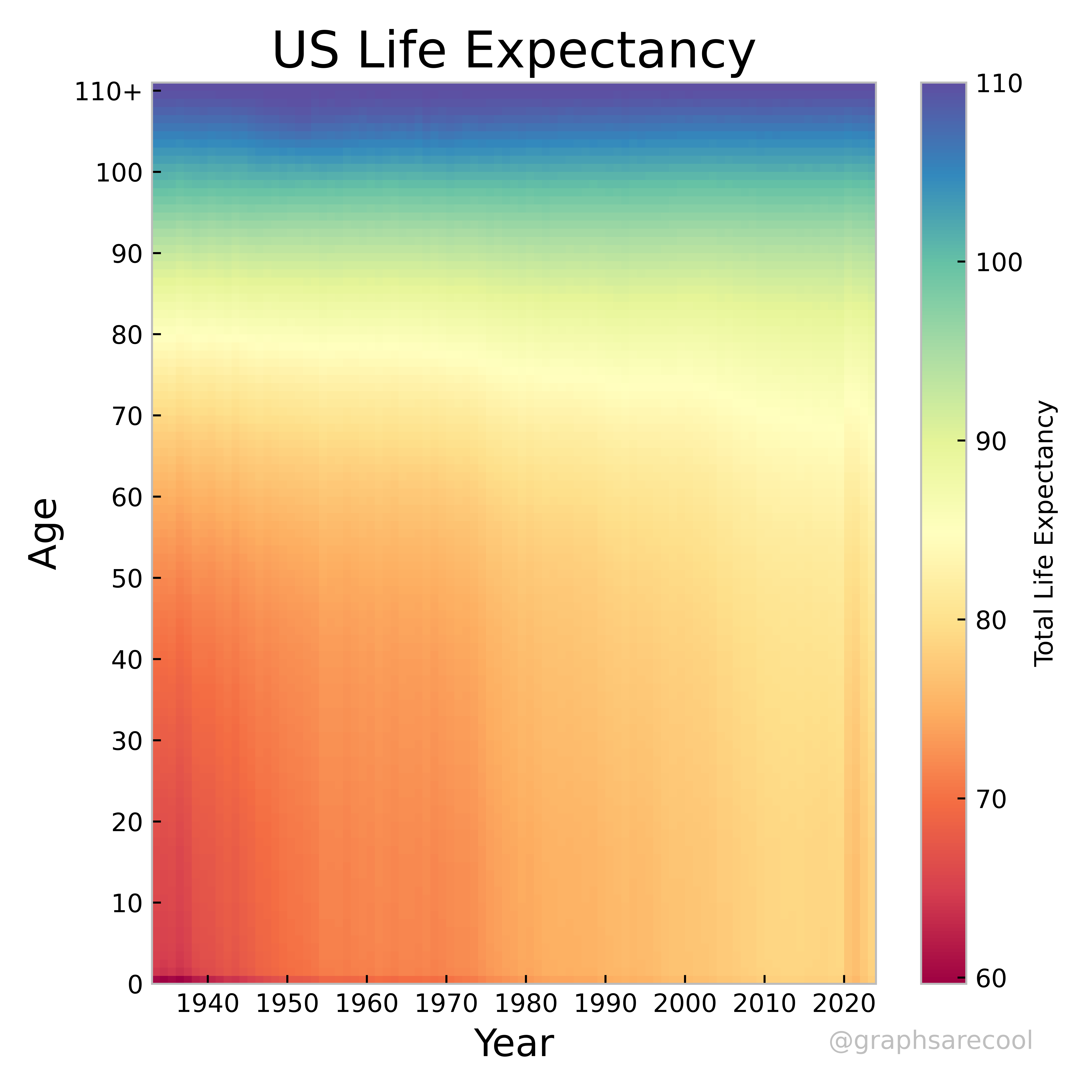 Colormaps of US mortality data 1933-2023.