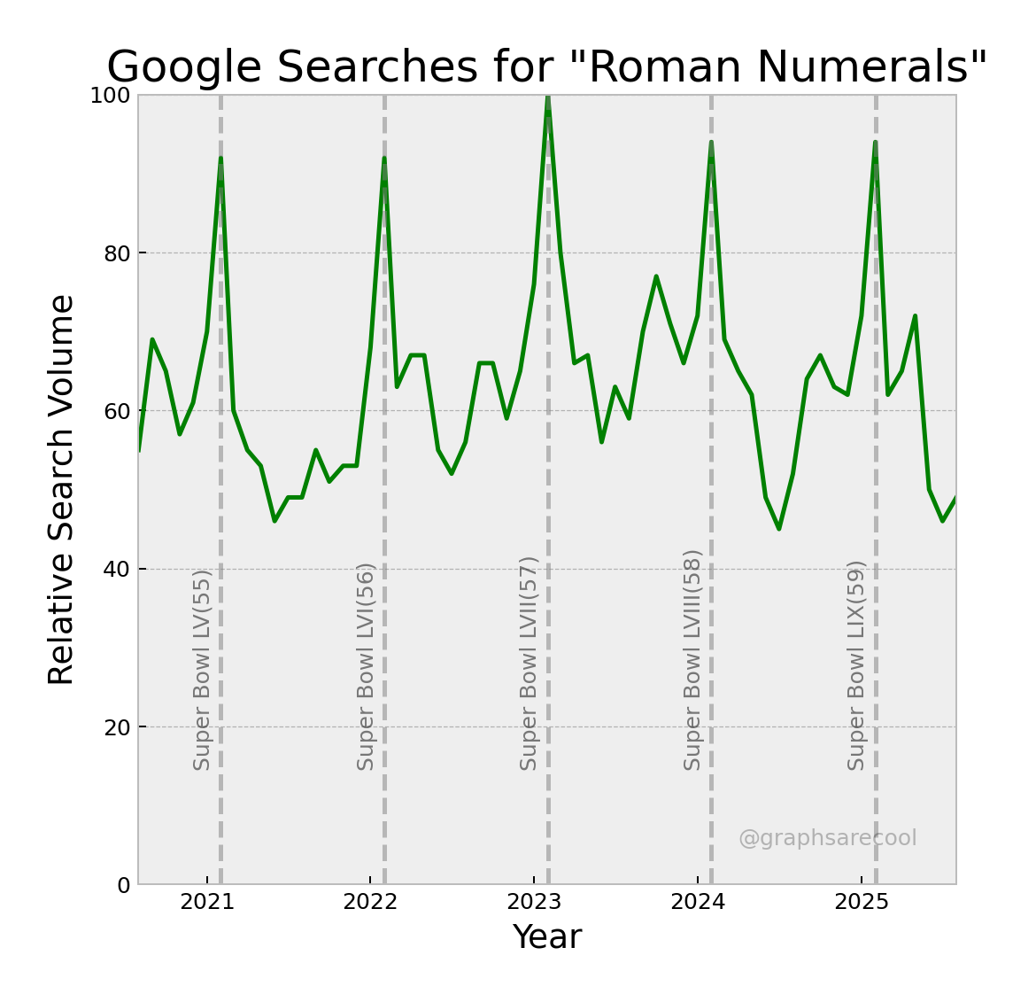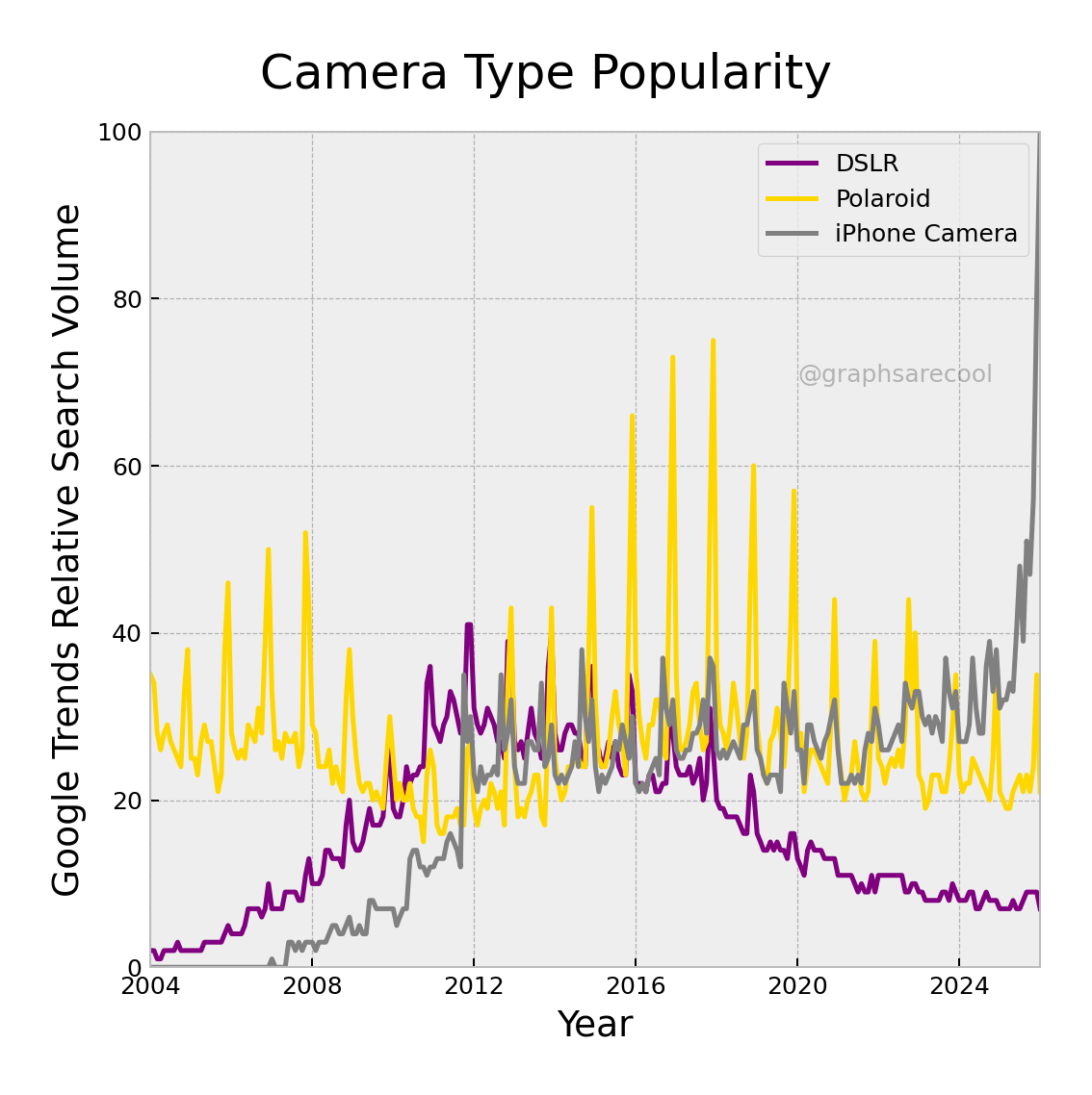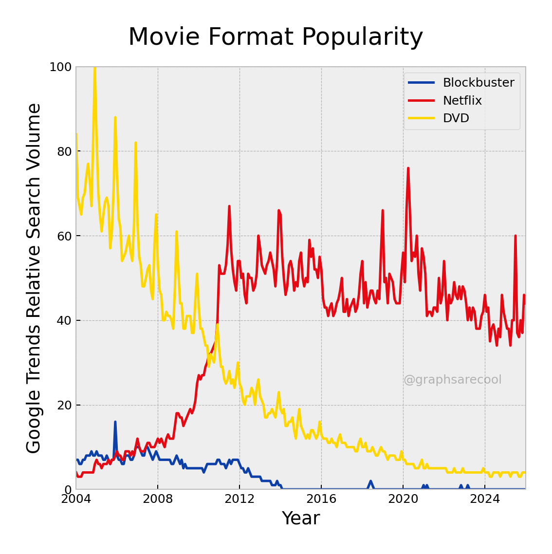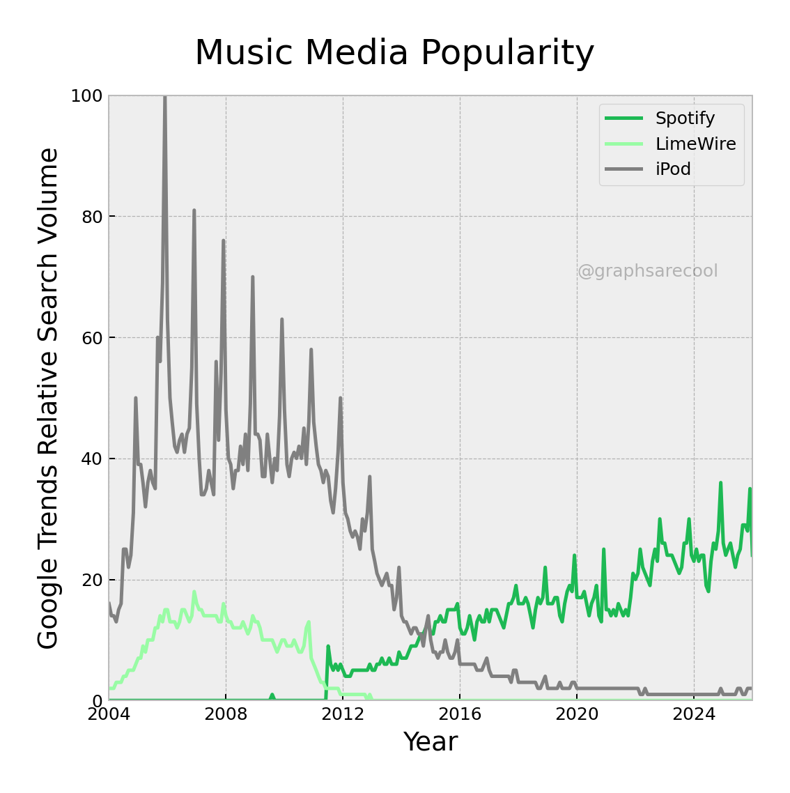 Graphs of popularity over time for search terms.