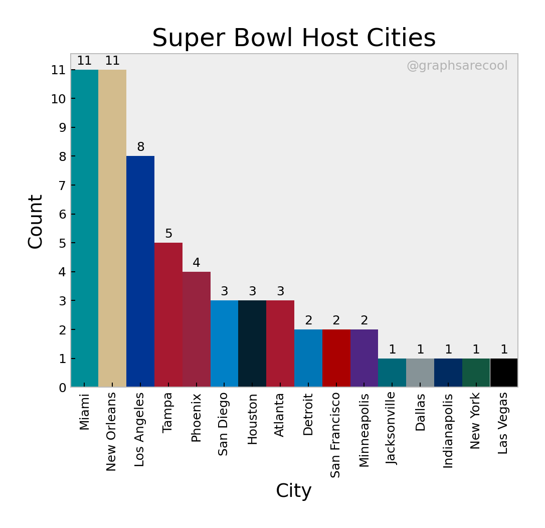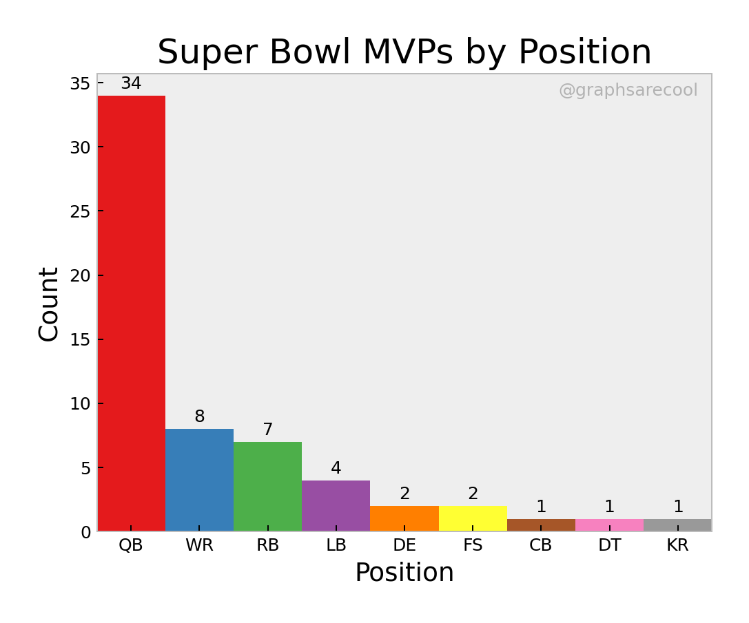 Graphs and bar charts of data about the superbowl.